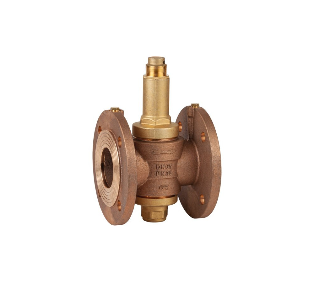 Bridas DIN PN 10/16. Cuerpo aleación de bronce UNI EN 1982. Cierre inox. AISI 303. Juntas tóricas: NBR. Máxima presión de entrada 30 bar. Máx. temperatura de trabajo 80ºC. Rango de salida ajustable de 1,5 a 7 bar.